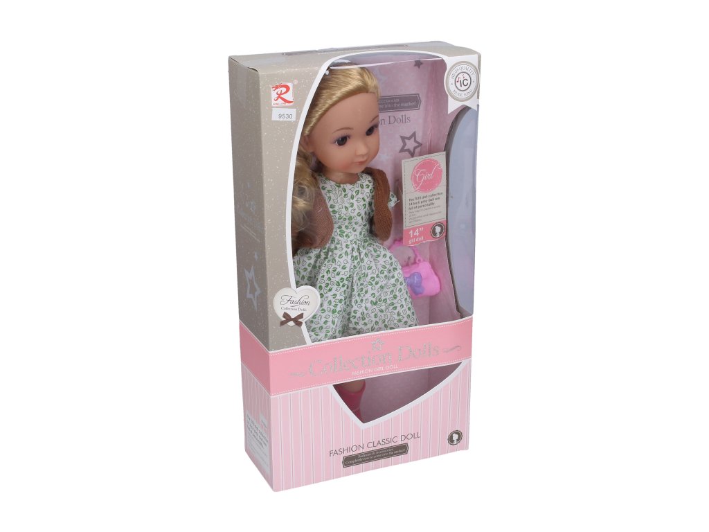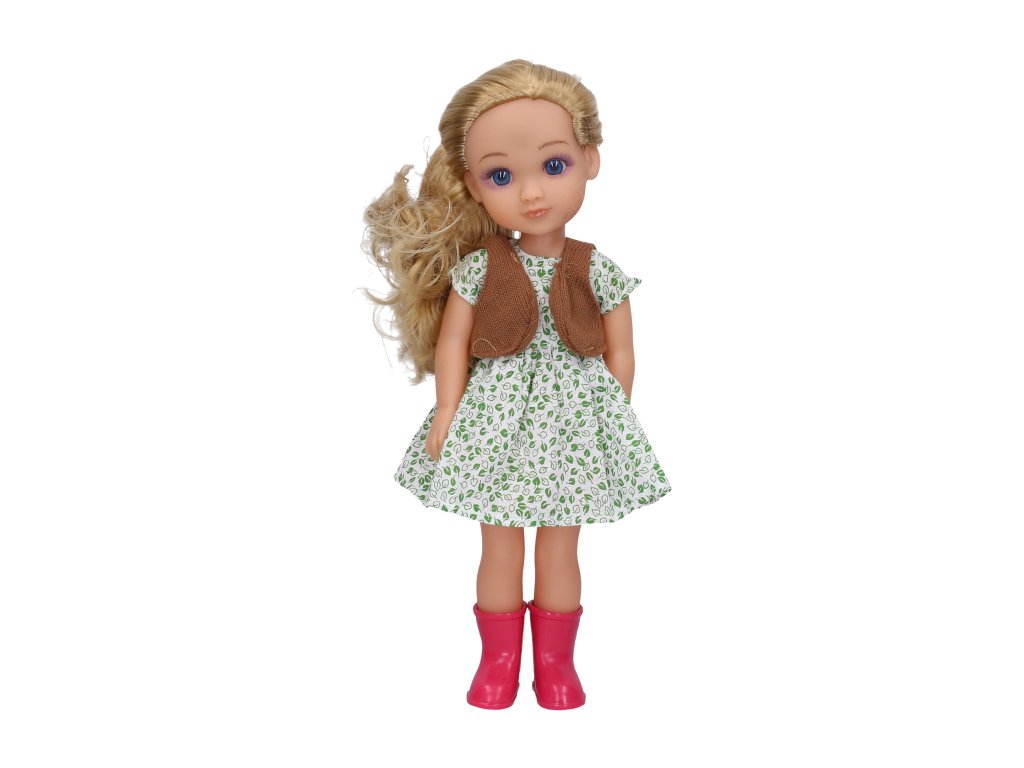 Panenka v šatech s efekty. Velikost 35cm. Zvukové efekty. obsahuje: panenku, kabelku, hřeben. 3xAG13 baterie součástí. 2 varianty - růžová, zelená.Doplňkové parametry