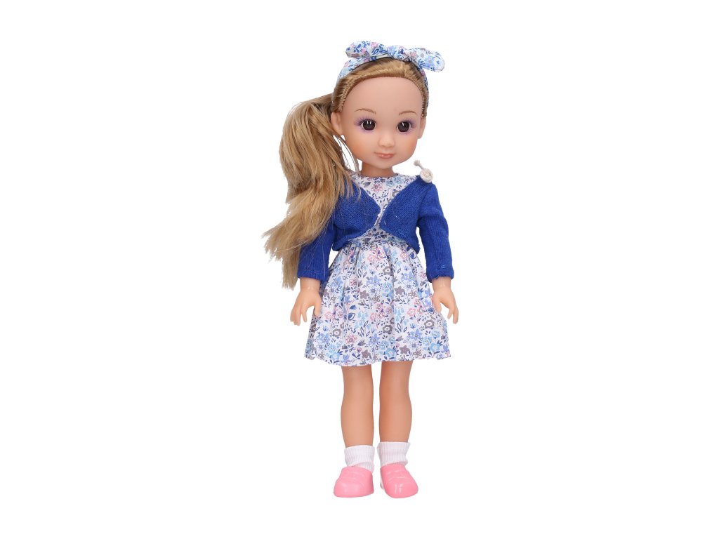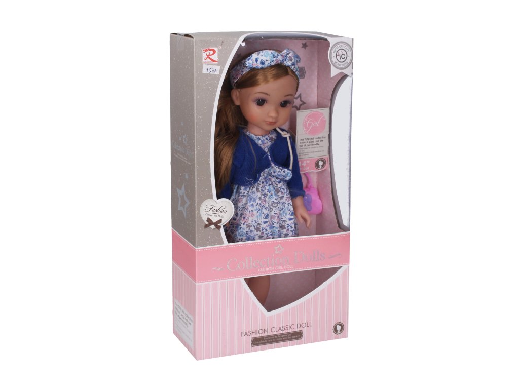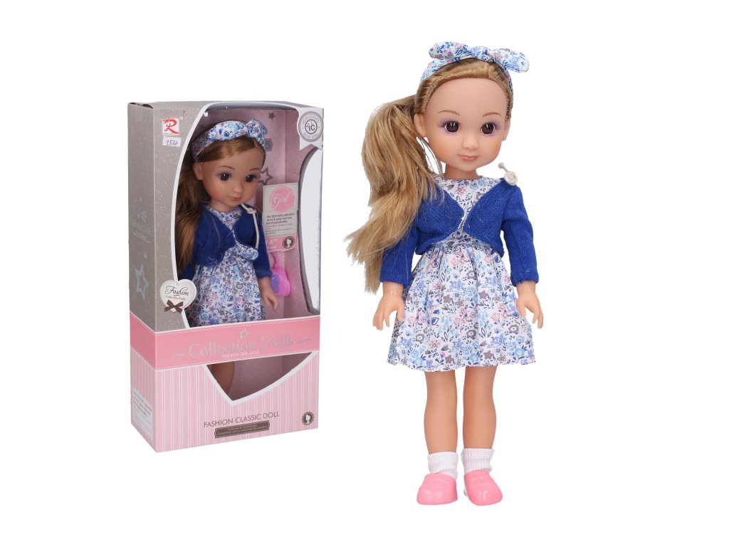Panenka s šátkem. Velikost 35cm. Zvukové efekty. obsahuje: panenku, kabelku, hřeben. 3xAG13 baterie součástí.Doplňkové parametry