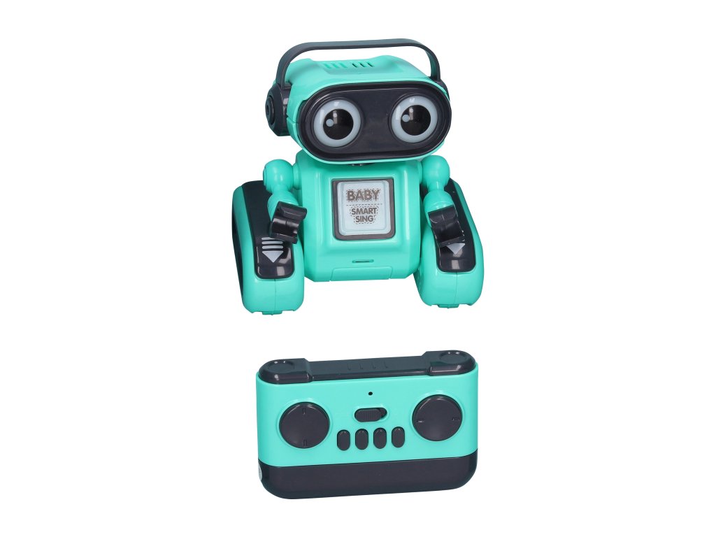 Robot Baby opakující RC na dálkové ovládání. Rozměry 11,8x9,5x13 cm. Frekvence 2.4GHz. Světelné a zvukové efekty. Bateriový pack 3.7V500mAh do robota součástí, 2xAAA do ovladače nejsou součástí. USB kabel součástí. ON/OFF na zádech robota. Ovladač - ON/OFF, pohyb dopředu, dozadu, otáčení vlevo, vpravo, tanec, zpěv, opakuje co říkáš. Manuálně pohyblivá hlava, ruce. Nabíjení 1 h, provoz až 2 h.Doplňkové parametry