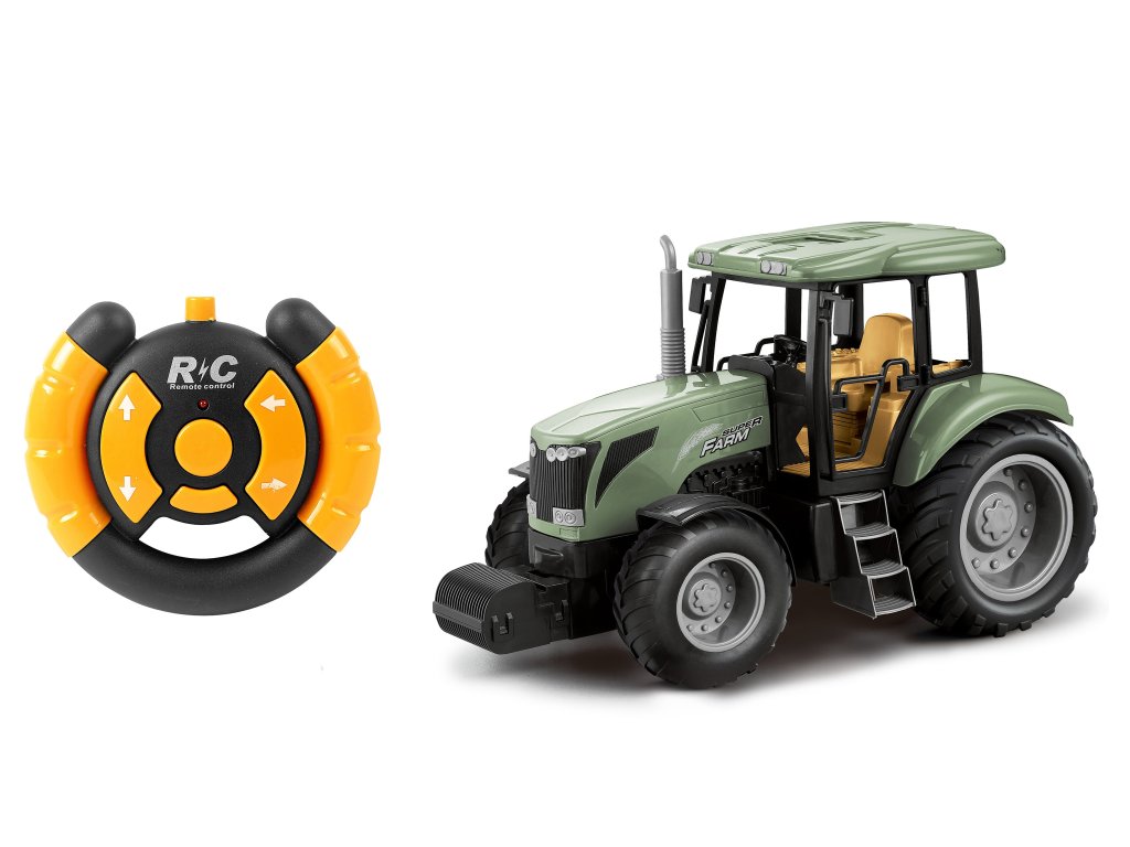 Traktor RC na dálkové ovládání. Velikost 24 cm. Frekvence 2.4GHz. Bateriový pack 3.7V do traktoru součástí, 2xAA do ovladače nejsou součástí. USB kabel součástí. Přepínač ON/OFF na spodní straně traktoru.Doplňkové parametry