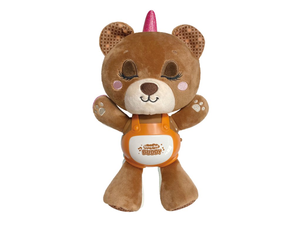 Usínáček medvěd. Velikost 29cm. baterie 3xAAA nejsou součástí. Přepínač on/off na boku zvířátka. Stisknutím bříška se spouští zvukové efekty- 1. stisknutí ukolébavka, 2. stisknutí uklidňující hudba, 3. stisknutí chrápání, 4. stisknutí pouze světlo, 5. stitknutí vypnutí, 6. stisknutí cycleDoplňkové parametry