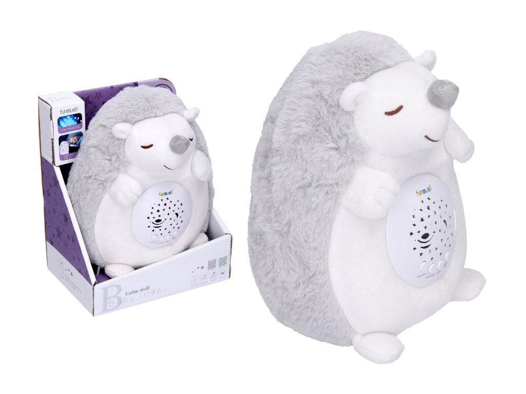 Plyšová ježeček pomůže vašemu miminku usnout za zvuku příjemné melodie nebo šumění. Projektor na bříšku ježečka promění pokojík v noční oblohu plnou hvězd a barev. Doporučený věk: od narození