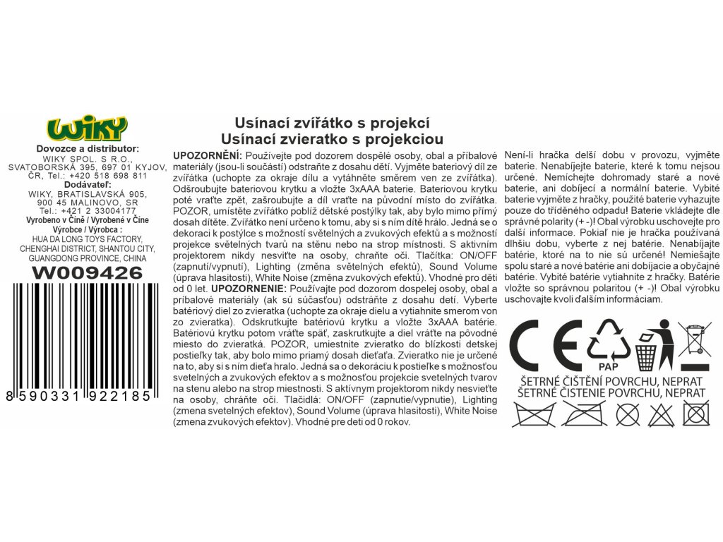 WIKY Usínáček - zvířátko s projekcí ježek 19 cm