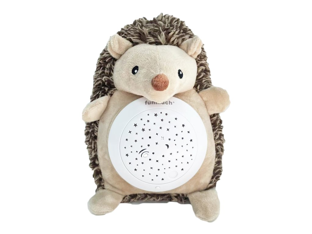 Usínací ježek s projekcí. Velikost 20cm. Baterie 3xAAA nejsou součástí. Projektor na bříšku ježkasvítí, hraje a otáčí se. Otočením projektoru proti směru hodinových ručiček se spustí ukolébavka a během hraní se projektor otáčí do původní polohy. Tím se hýbe i projekce hvězdné oblohy. Projektor jde vyjmout z bříška ježka. Dozadu projektoru se vkládají baterie. Projekce se zapíná tlačítkem.Doplňkové parametry