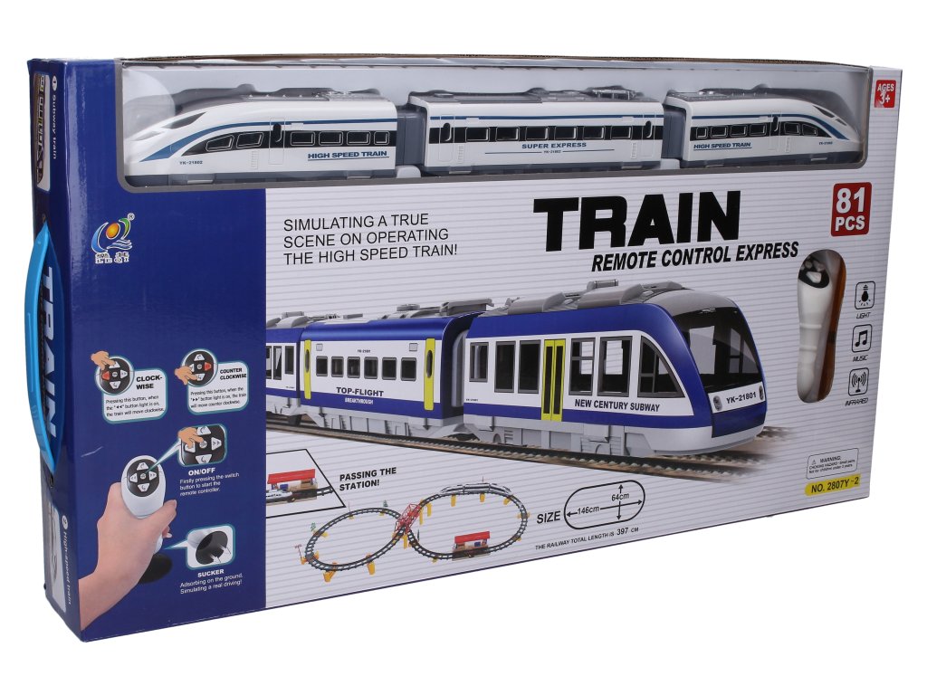 Vlak vydává světelné a zvukové efekty. Set obsahuje 81 dílů. Infračervený port. Vagóny jsou propojeny magnety. Vlak - 3xAA, nejsou součástí. Ovladač - 2xAA, nejsou součástí. ON/OFF spínač uprostřed ovladače.