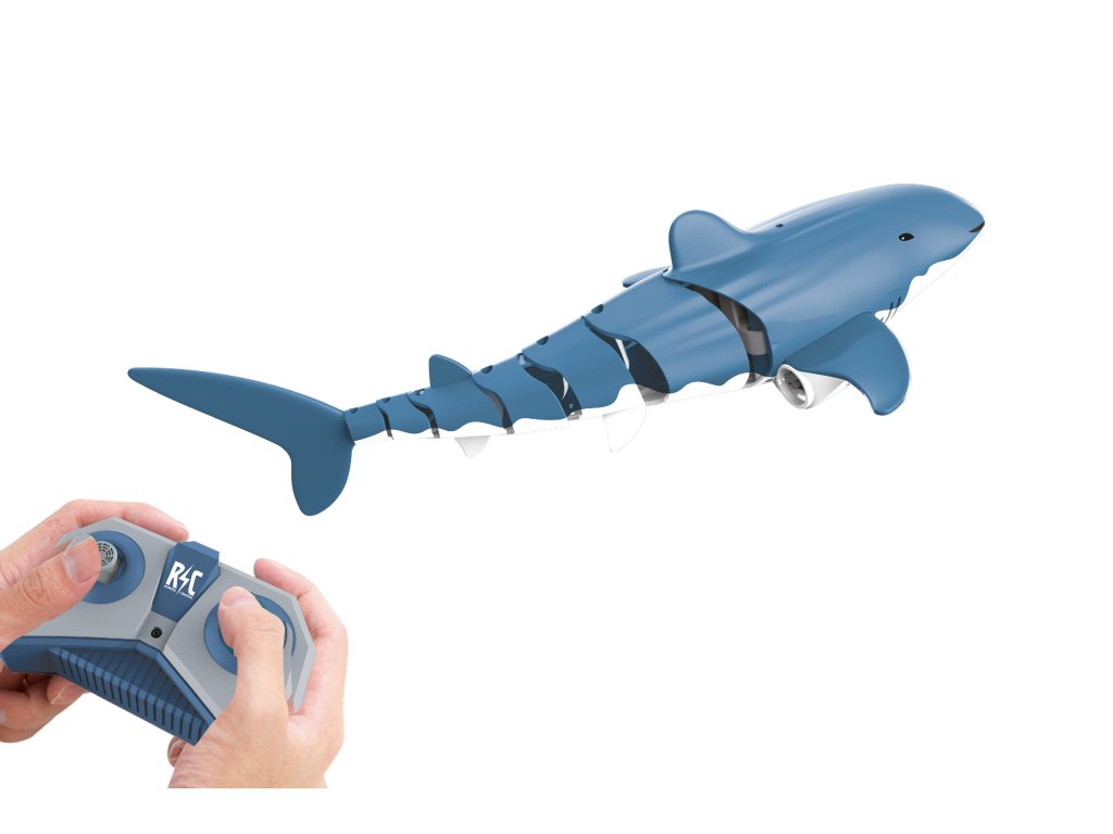 Žralok bílý RC do vody. Velikost 35 cm. Frekvence 2,4 GHz. 1 rotor na každé straně pod předními ploutvemi (celkem 2 rotory). USB nabíječka v balení. Pohyb dopředu a zatáčení do stranDoplňkové parametry