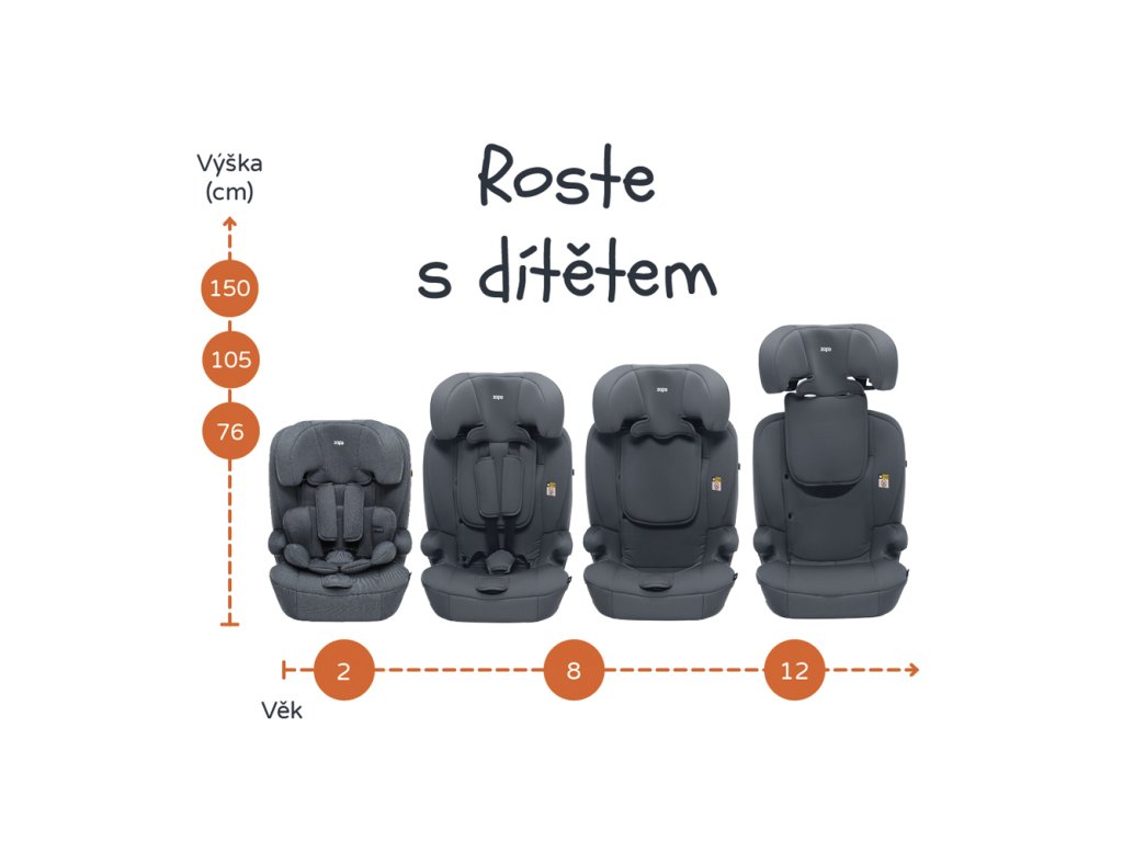bude potřebovat – od 15 měsíců až do 12 let (od 76 do 150 cm). Splňuje nejpřísnější bezpečnostní normu ECE R129