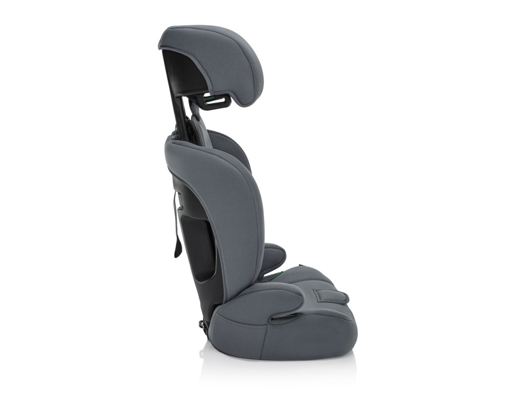 Pro menší děti (do 105 cm) se využívá integrovaný pětibodový bezpečnostní pás, který zajišťuje optimální fixaci a bezpečnost. Jakmile dítě vyroste nad 100 cm, snadno přejdete na tříbodový bezpečnostní pás vozidla. Díky nastavitelné opěrce hlavy a pásům se autosedačka vždy dokonale přizpůsobí aktuální výšce dítěte.