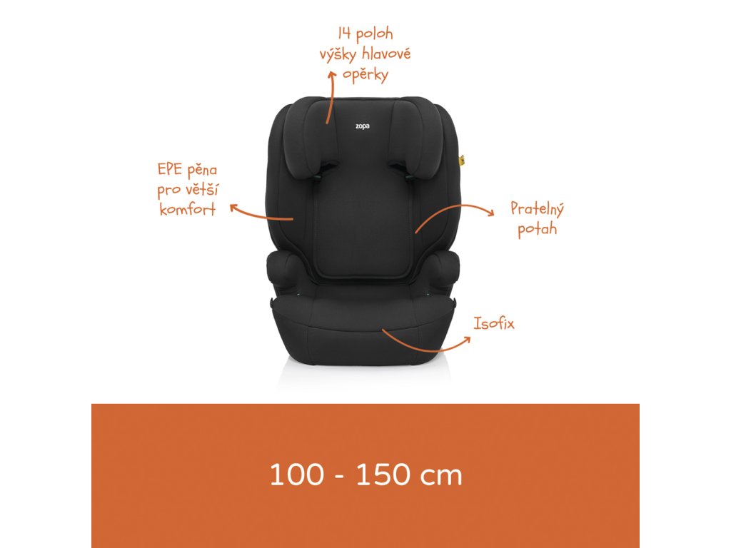 Zopa Beta i-Size Isofix je prémiová autosedačka, která spojuje bezpečnost s komfortem. Je navržena pro děti s výškou od 100 do 150 cm, což pokrývá široké věkové rozpětí přibližně od 3 do 12 let.