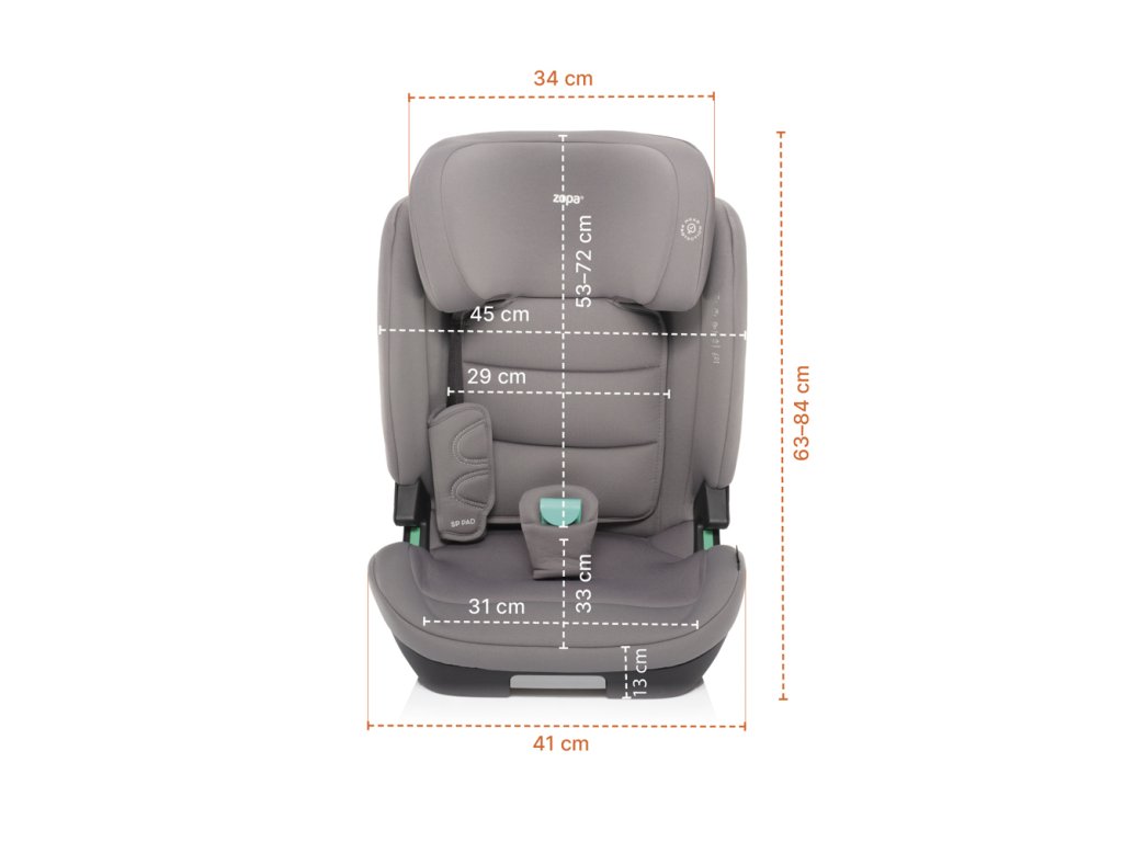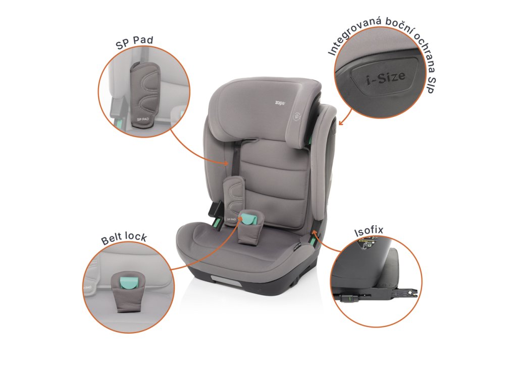 autosedačka vybavena SP PAD, které redukují zatížení hlavičky, krční páteře a