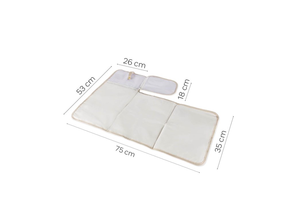 Kompaktní přebalovací podložka se třemi kapsami, která usnadní přebalování na cestách. Snadno se čistí, nezabere místo a vše potřebné máte vždy při ruce.