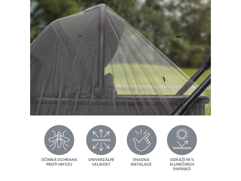 takže moskytiéru jednoduše natáhnete kolem kočárku pro bezpečné uchycení. Užijte