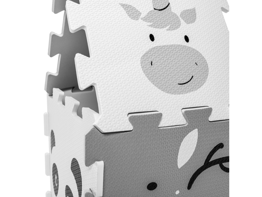 Jednotlivé dlaždice 30 × 30 cm (9 ks) na sebe perfektně navazují. Podložka je vhodná pro děti od narození, vyrobená z nezávadného a příjemného materiálu.