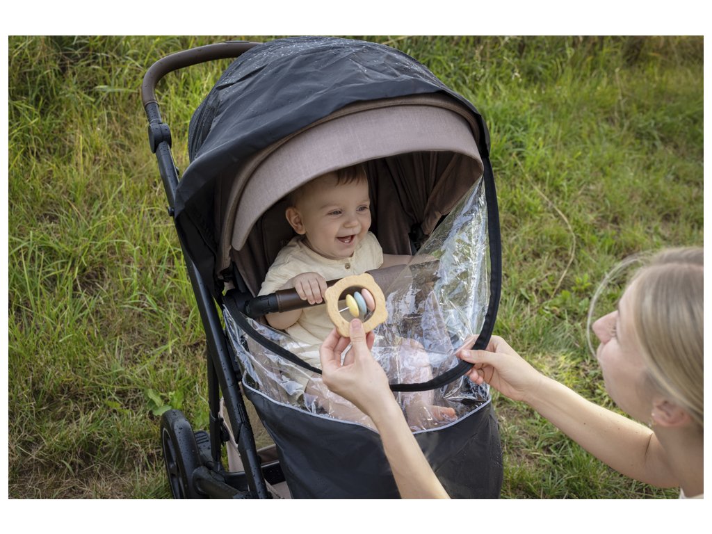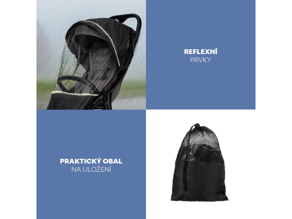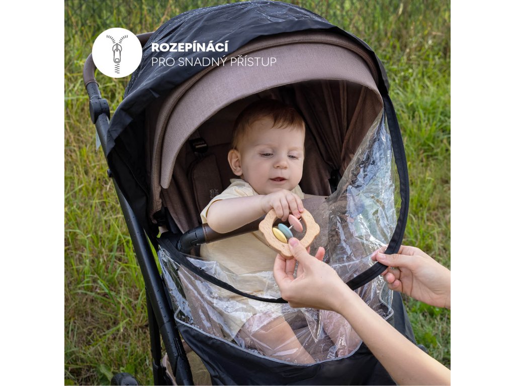 Spolehlivá ochrana proti dešti, větru i hmyzu – pasuje na sportovní sezení i hlubokou korbu. Praktické zipové okénko umožňuje rychlý přístup k dítěti bez nutnosti sundání celé pláštěnky.