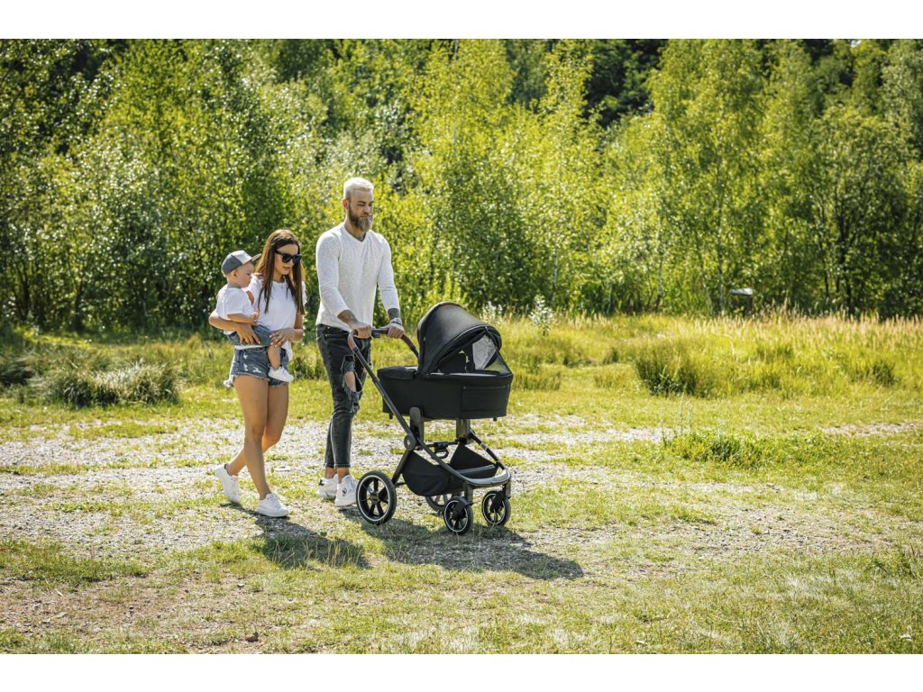 poloze, a rodič poté pohodlně pomocí madla sejme korbu z podvozku.