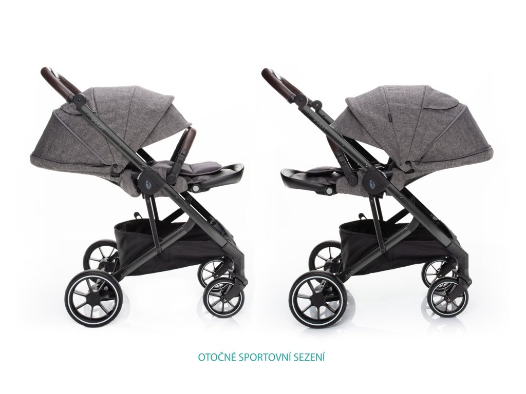 Součástí setu je podvozek se sportovním sezením, hluboká korba, adaptéry, autosedačka a isofixová báze na autosedačku.