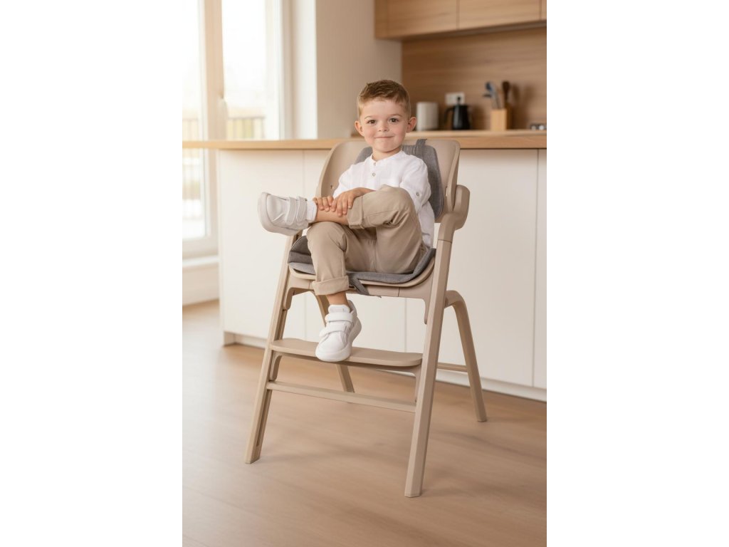Jakmile miminko začne samostatně sedět, jednoduše set odejmete a přejdete na klasickou židličku s praktickým odnímatelným pultíkem. Výškově nastavitelný sedák i opěrka nohou umožňují ergonomické sezení po celou dobu růstu.