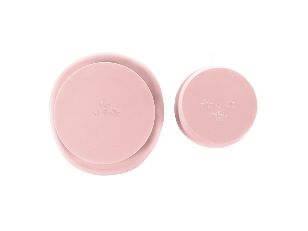 Nádobí je vyrobeno z bezpečného potravinářského silikonu, který je netoxický a odolný proti rozbití. Pro malé děti je silikon přirozenější než plast či kov. Děti často objevují svět svými ústy a při hraní si s nádobím a kousáním do něj nehrozí, že se dítě zraní, jelikož je vyrobeno z pružného, měkkého, a přesto velmi odolného materiálu. Silná protiskluzová přísavka zajistí, že miska a dělený talířek budou držet na stole, či na pultíku vysoké jídelní židle a tím se zabrání překlopení nebo pádu, pro hravější děti bude velmi obtížné toto nádobí zvednout a hodit na zem.