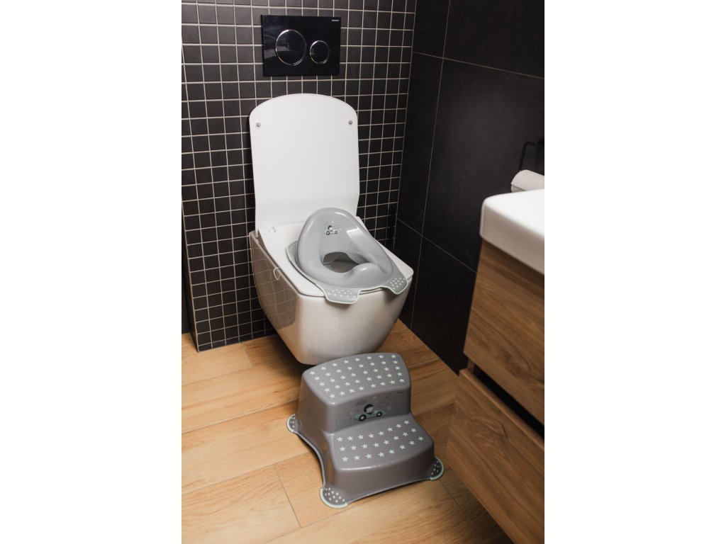 Stupínek pro malé děti k umyvadlu a k WC s protiskluzovou úpravou pomáhá bezpečně si osvojovat základní hygienické návyky.