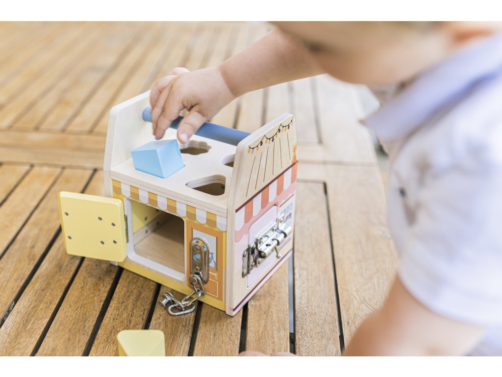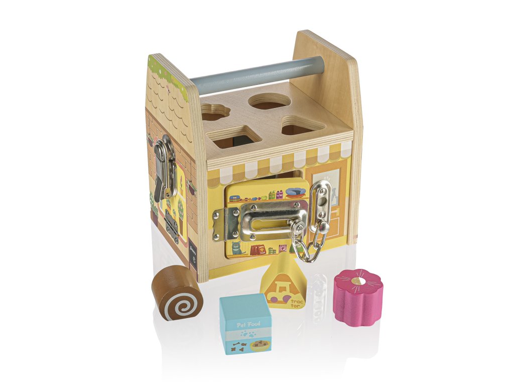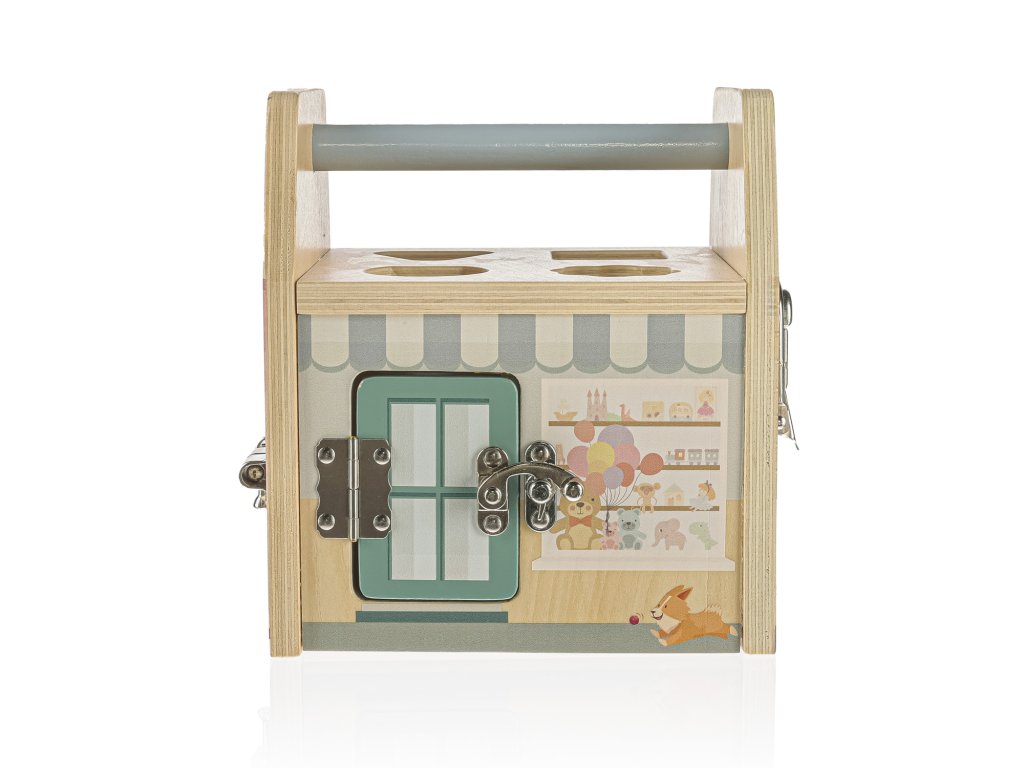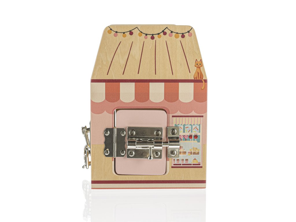 Proměňte hraní v parádní objevitelskou misi! Tato Montessori kostka od značky Zopa není jen obyčejná hračka – je to celé malé městečko plné obchodů, které čekají, až je vaše dítko otevře. Každá stěna ukrývá jiný typ speciálního zámku, se kterým si malí kutilové vyhrají dlouhé hodiny. 🤩