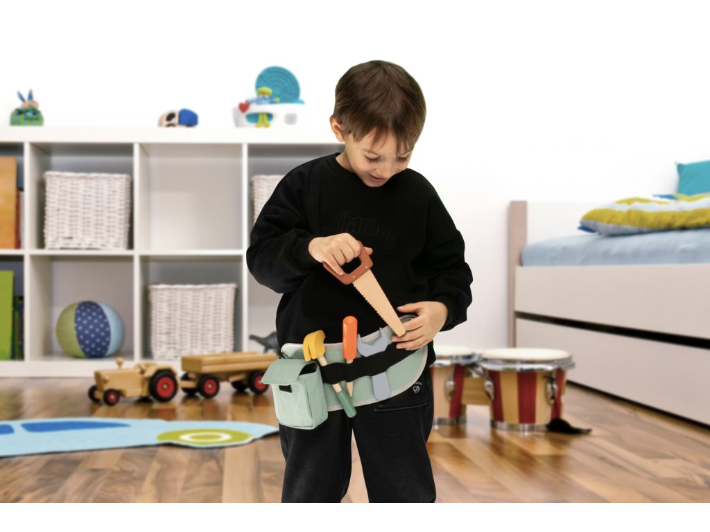 Máte doma budoucího kutila, který chce být u každé opravy? S tímto praktickým pásem na nářadí bude mít váš malý šikula všechno důležité vybavení hned po ruce, přesně jako dospělí řemeslníci.