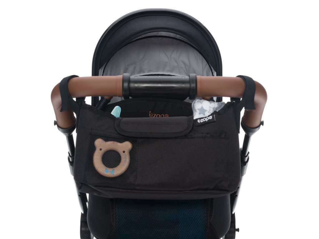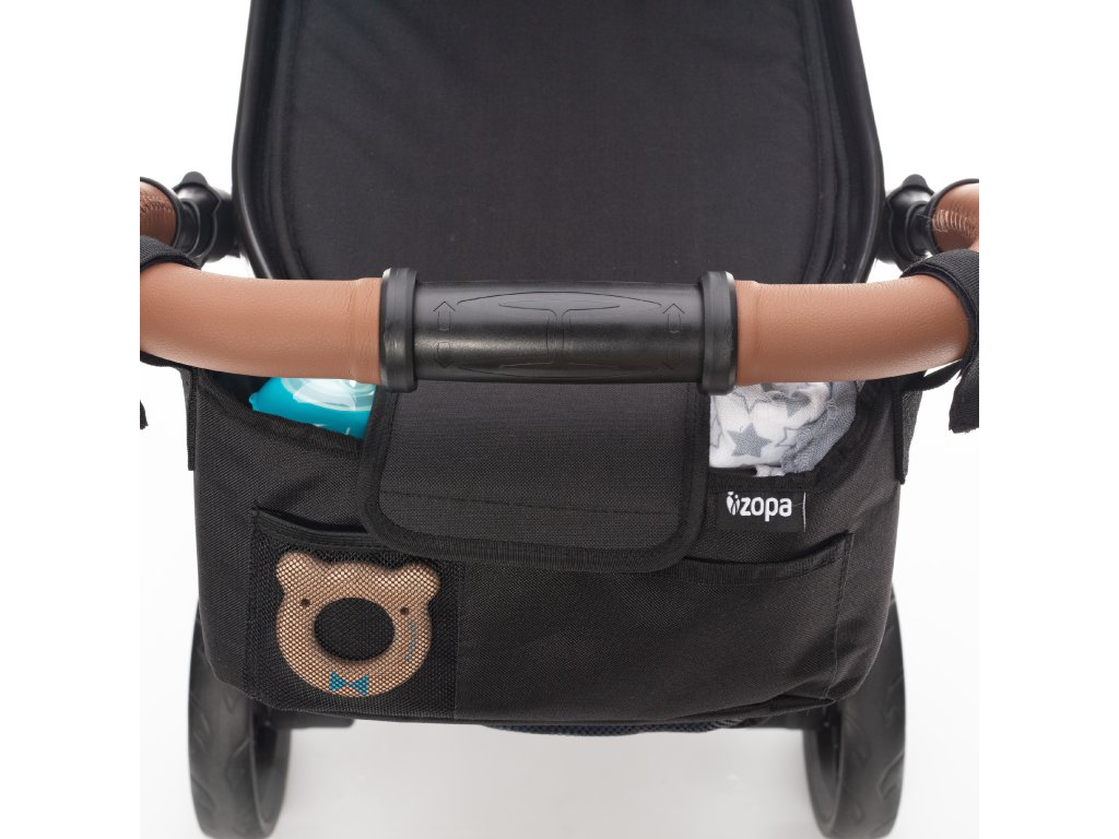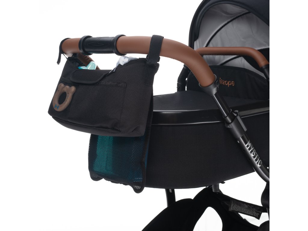 Organizér na kočárek PLUS je svojí perfektní velikostí vhodný ke každému kočárku. Je velmi prostorný a obsahuje až 6 kapes, které vyhoví potřebám a požadavkům každé moderní maminky. Samozřejmostí je přední kapsa na mobil a kapsa na drobnosti. V zadní části organizéru se nachází větší síťovinová kapsa na umístění časopisů. Hlavní kapsa je řešena tak, aby se po bocích daly umístit láhve. Jeho instalace je jednoduchá a rychlá za pomoci háčků na suché zipy.