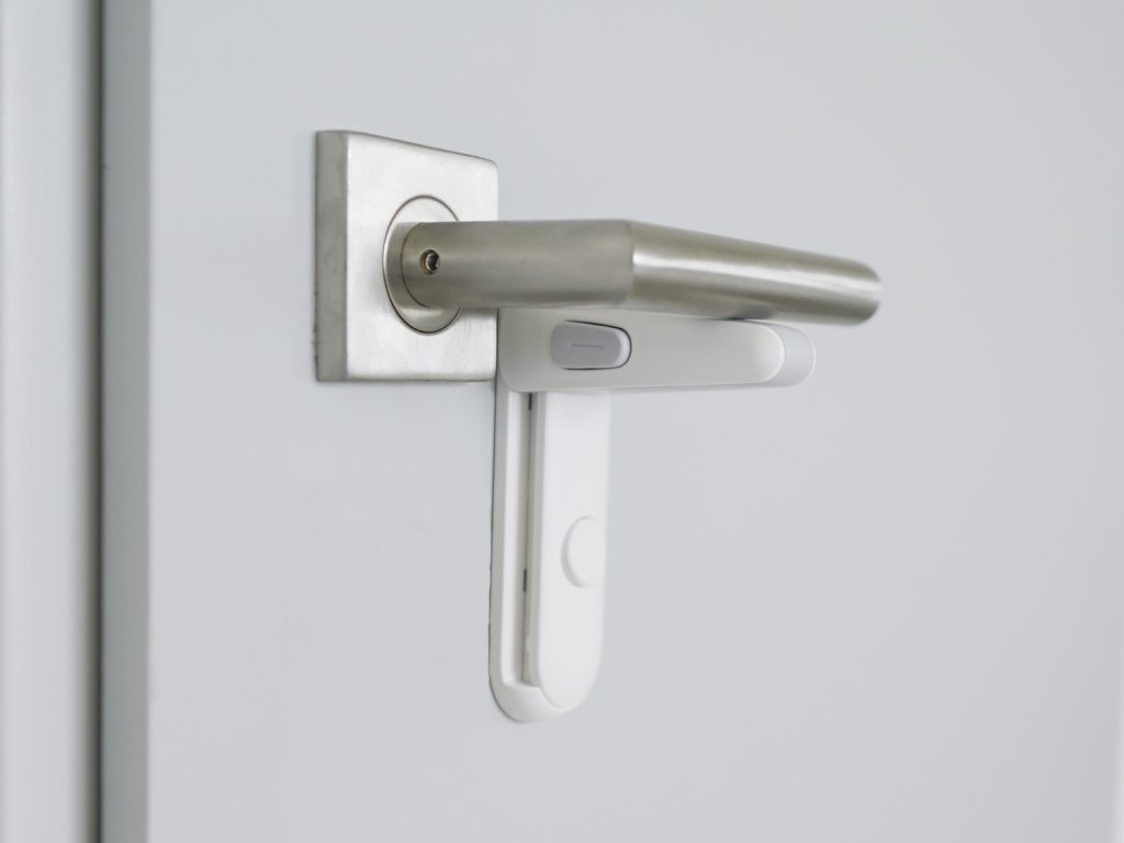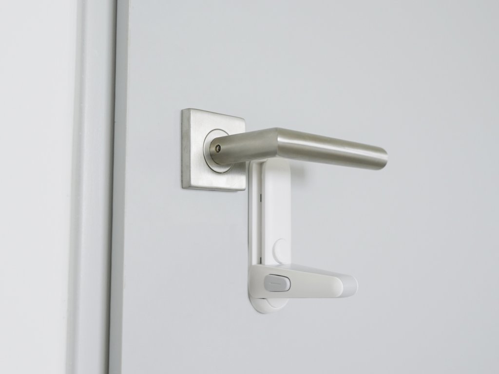 Praktický zámek umožňuje zablokovat kliku, a zabránit tak otevření dveří do určité místnosti. Snadná instalace probíhá pomocí 3M lepicí pásky.