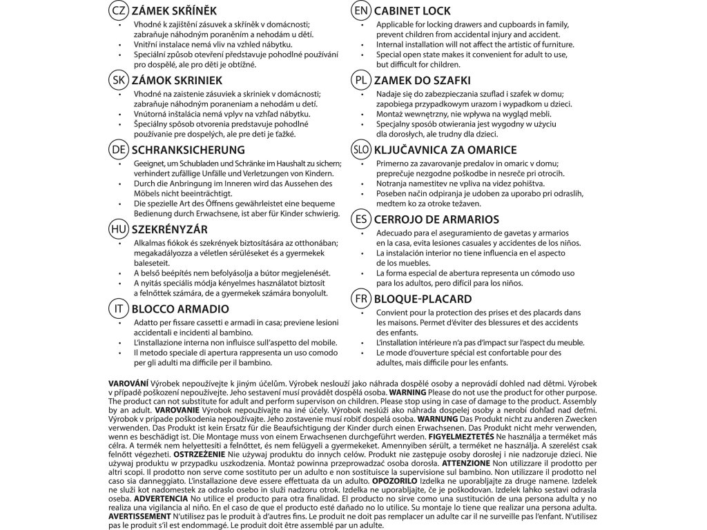 • Vhodné k zajištění zásuvek a skříněk v domácnosti